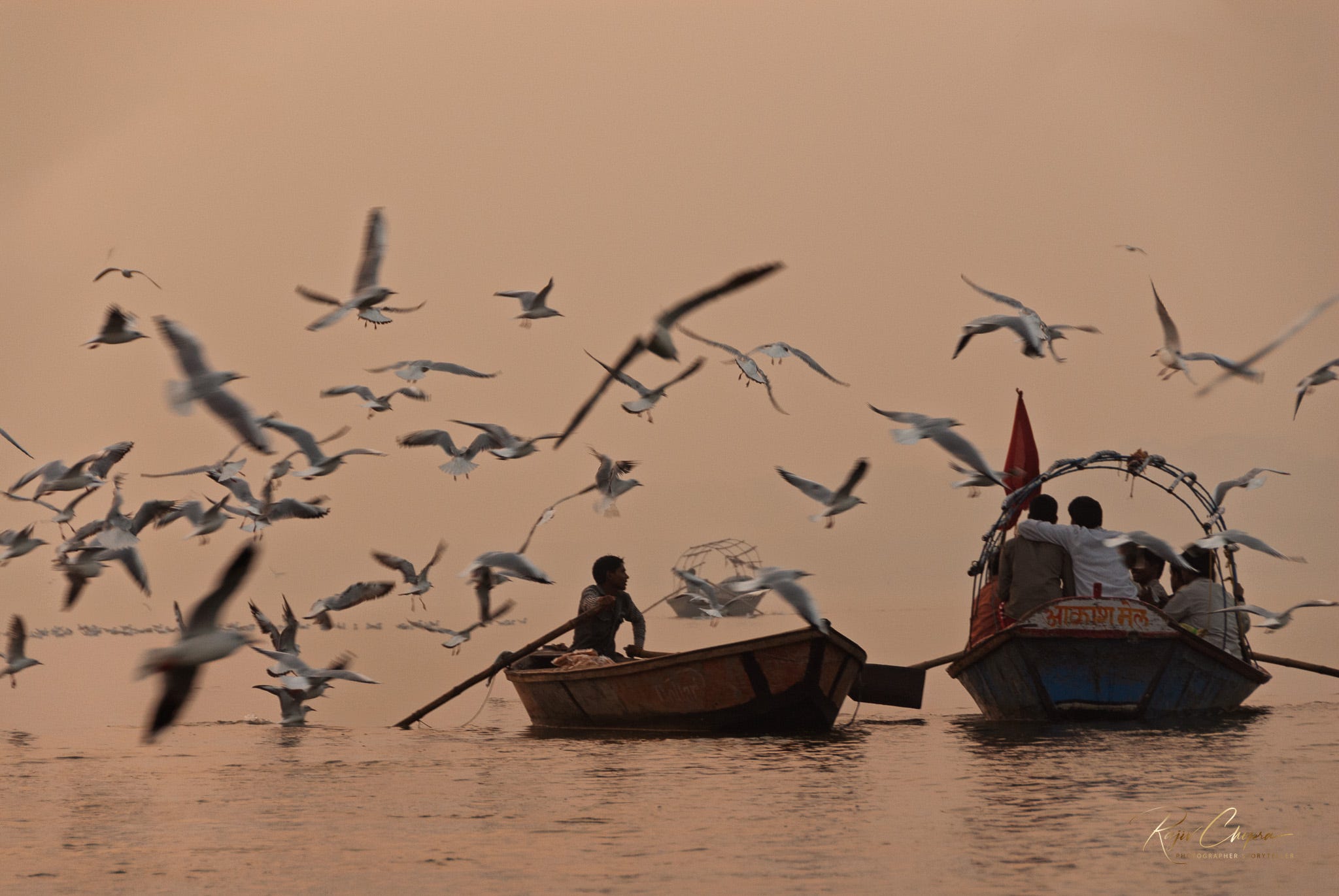All this religious stuff did not matter when we boarded the boat. Pilgrims and the local devout bathed in the water, each lost in their personal meditation. It was dark when we boarded the boat and sailed on the river’s waters. Pigeons flapped, waiting for the sun to appear over the horizon, and they continued flying around people who bathed, or sailed the waters, or just allowed the beauty of sunrise to engulf them.