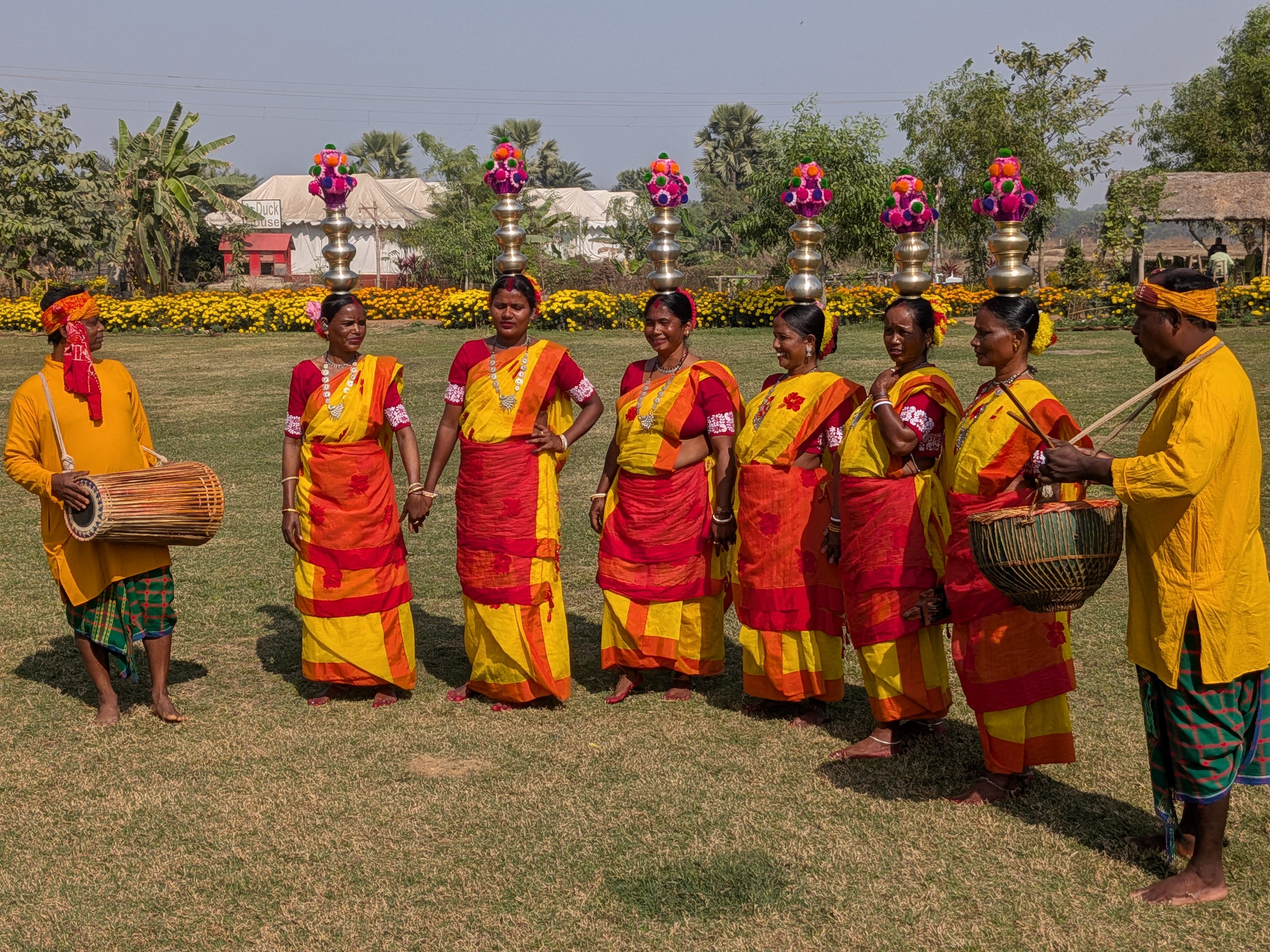 Excellent post. The headgear that the women were is amazing. How light it must be and how strong the construction must also be. So, frustrating the sound quality especially since the picture quality is so excellent. The instruments are really interesting as they were actually strumming notes, but I didn't see how the notes or different notes were played. The singing was interesting too if only sound didn't keep going in and out. The cool thing is that we would never see these people unless you make these videos. Also, I liked the part of the video showing Rabindranath Tagore's house. That is quite a big house. Guess no one lives there now. Maybe it is sort of a museum. You are very intrepid with your travelogues. Looking forward to the next ones and hoping the sound can be sorted out.