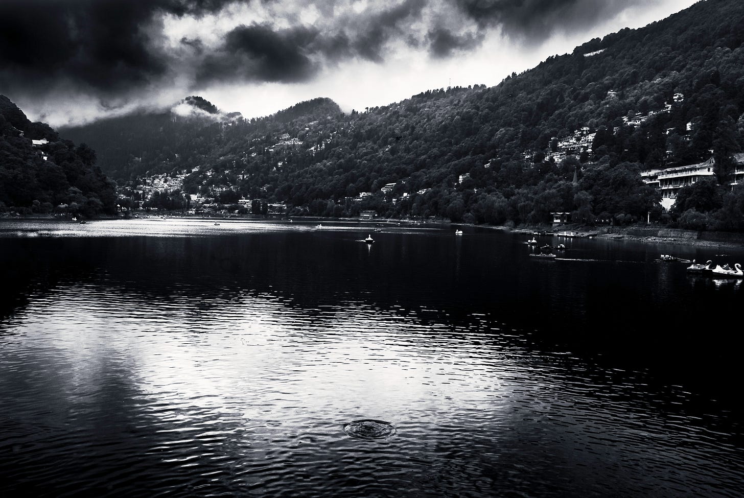 The peak you see in this monochrome image is China Peak, or Cheena Peak as we pronounce it, at the far end of Nainital and the highest point in the hill station.